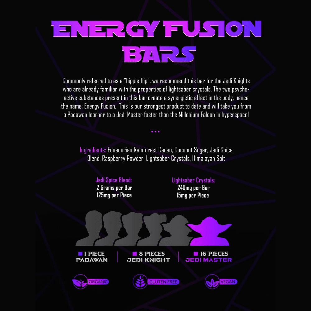 Unlock your true potential with the 2g/125mg Jedi Mind Tricks with Energy Fusion Bar. Harness the power of cutting-edge neuroscience and energy fusion technology in one delicious bar.