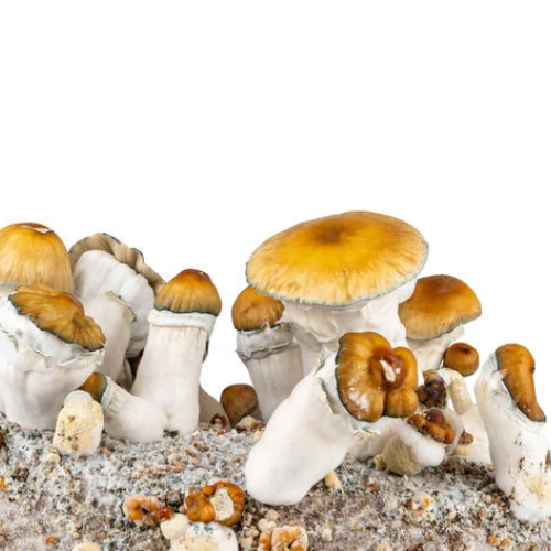 Heather grey fatty stems with pale to bright orange caps. shortie fat stems almost look like tree trunks.